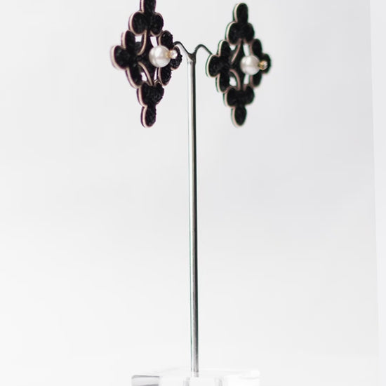 Enchanting big club-shaped studs with a central pearl, blending a unique design with classic elegance for a versatile accessory.
