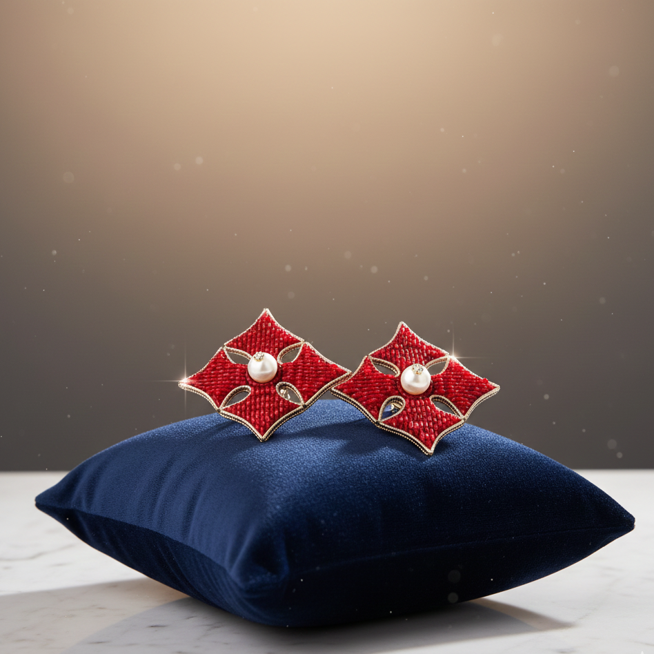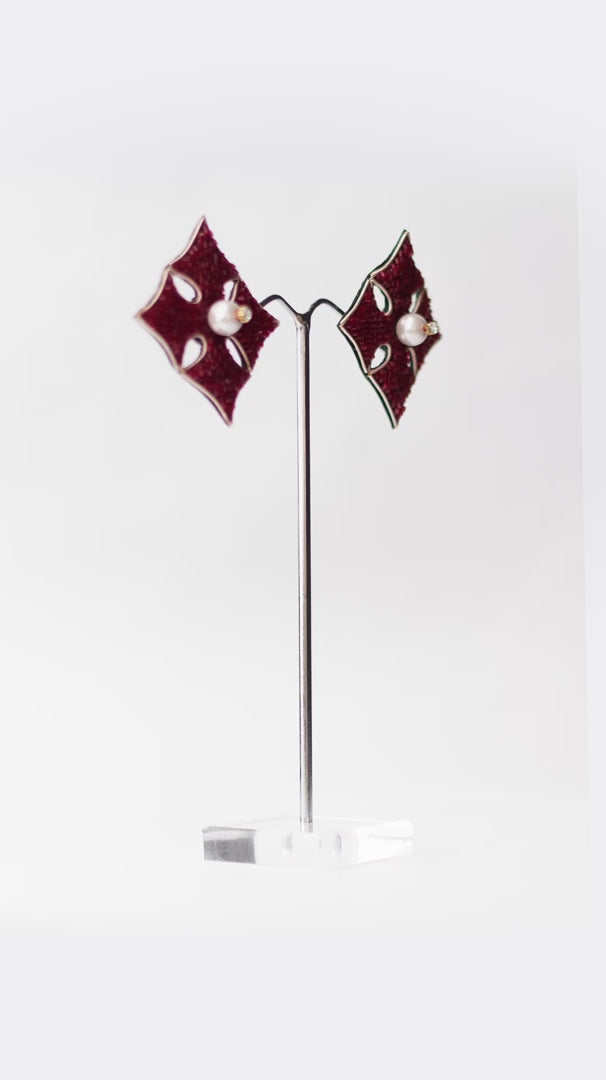 Enchanting big club-shaped studs with a central pearl, blending a unique design with classic elegance for a versatile accessory.