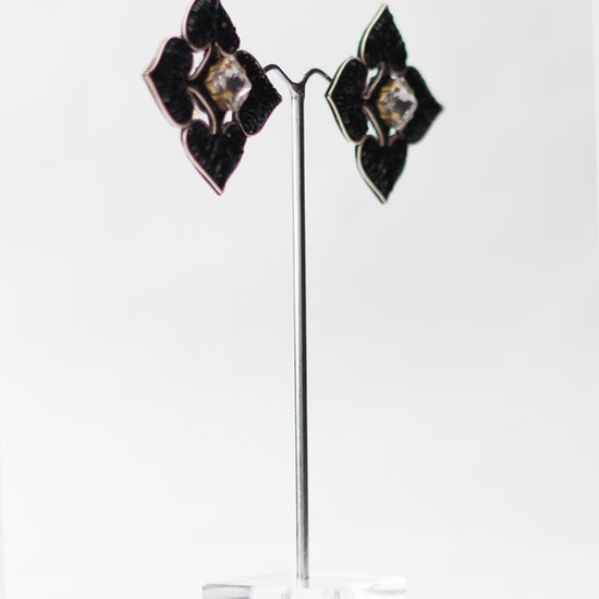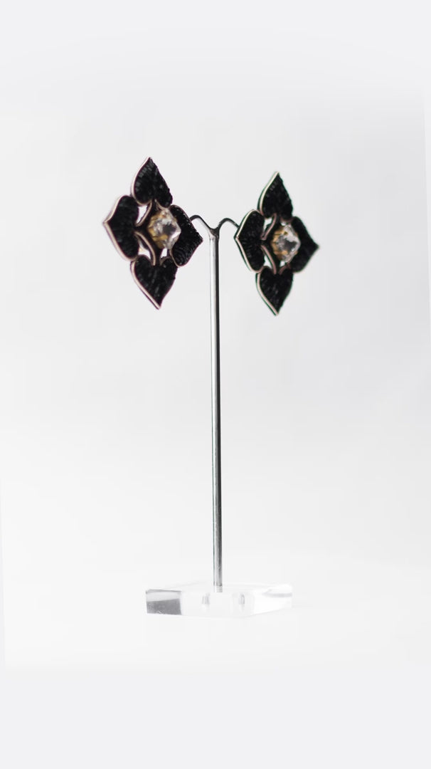 | Distinctive macro spade-shaped studs with square glass stone. |